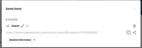 5. Open the bookmark by pressing the arrow, copy this link by clicking on the Copy link text and share it with others by clicking the Share text. To see more information, expand Detailed information.