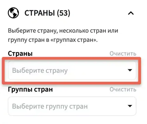 3. Чтобы добавить страну на диаграмму, разверните пункт «Страны» и выберите нужную.