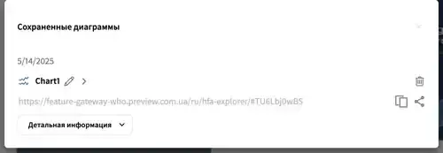 5. Можно открыть нужную диаграмму, нажав на стрелку, скопировать ссылку на диаграмму, нажав «Копировать ссылку», или поделиться ей, нажав «Поделиться». Подробнее о диаграмме можно узнать, нажав «Детальная информация».