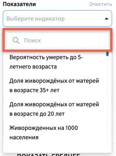 2. Выберите нужный показатель: